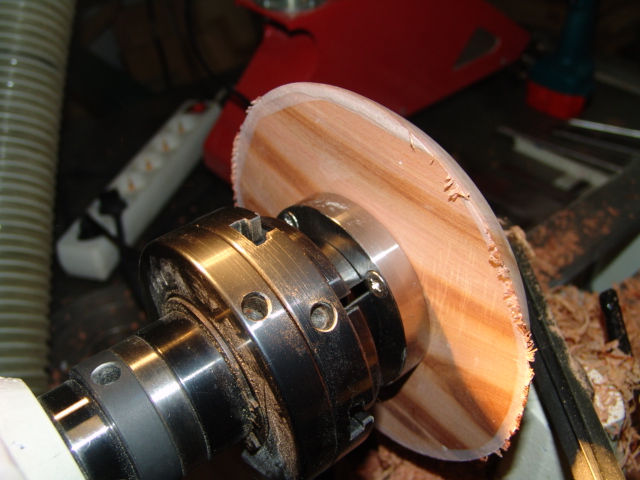 No właśnie, czaszowy widziałem na mnóstwie filmów, widziałem toczenie na kle zabierakowym (i tak mnie ojciec uczył, takim zrobionym z... klucza od szafy odpowiednio przepiłowanym!), widziałem patent ze śrubą wkręconą w wałek, przefajne konstrukcje do misek złożone z dwóch tarcz i parunastu rolek zaciskających się na krawędzie miski czy talerza.